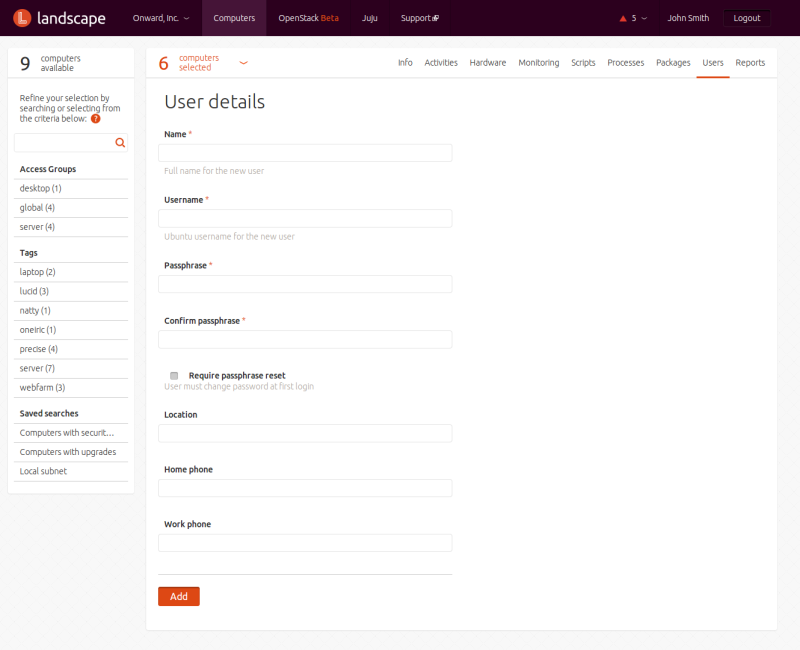 The button lets you add a new user to the selected computers.